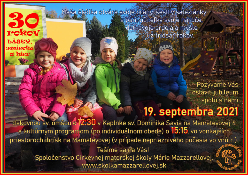 Naša škôlka oslavuje 30. narodeniny, preto Vás srdečne pozývame na oslavu v nedeľu 19.9.2021